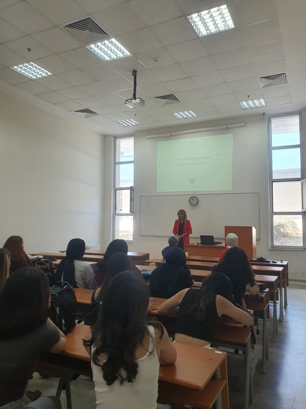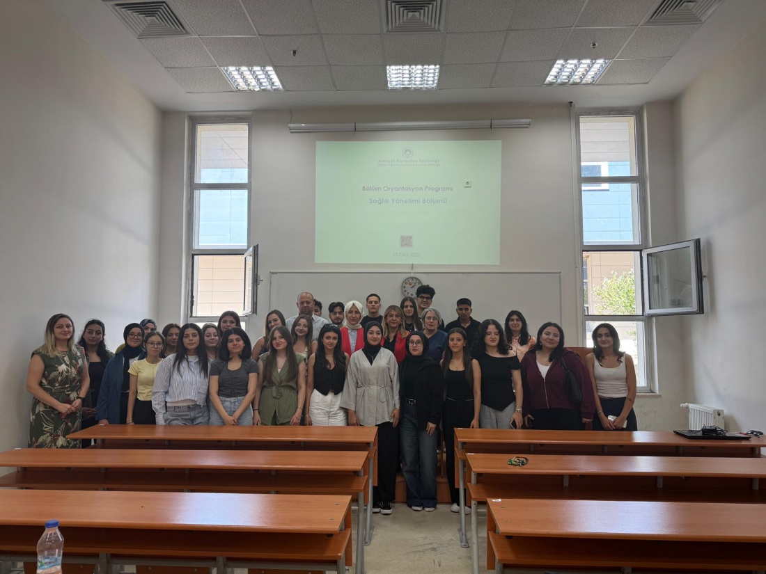 Sağlık Yönetimi Bölümü oryantasyon programı kapsamında sunum, Doç. Dr. Yeliz MERCAN tarafından gerçekleştirilmiş; öğrencilerin bölümle ilgili merak ettikleri sorular öğretim elemanları tarafından yanıtlanmıştır. Programın devamında, Arş. Gör. Fatma YÜKSELİR ALASIRT tarafından “Bağımlılıkla Mücadele Eğitimi” sunumu gerçekleştirilmiştir.