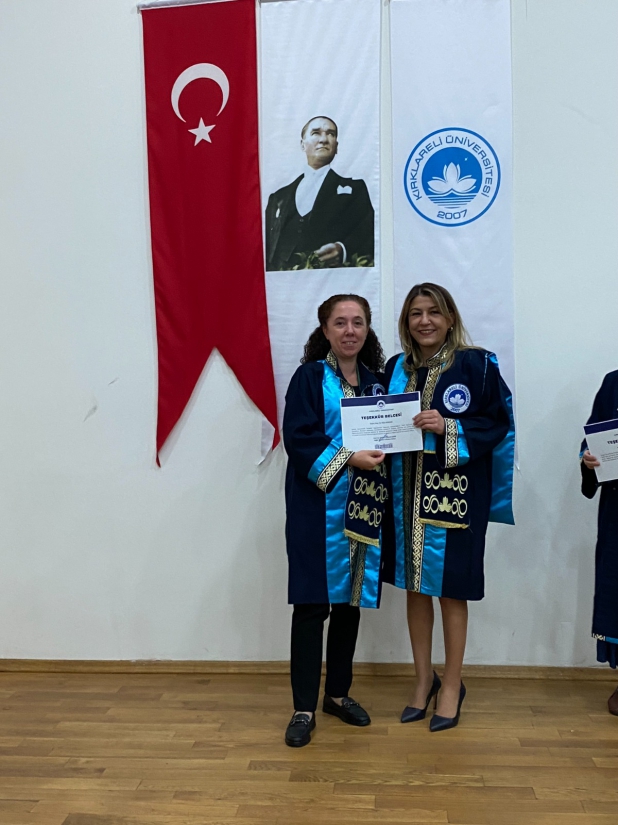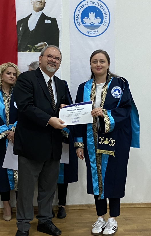 Ayrıca, 2219 TÜBİTAK Yurt Dışı Doktora Sonrası Araştırma Burs Programı kapsamında Güney Florida Üniversitesi’nde “Kronik Hastalıklarda Tarama Sıklığı Değişiminin Sağlık Ekonomisi Açısından İncelenmesi” başlıklı araştırma projesini tamamlayan Dr. Öğr. Üyesi Demet Topal Koç’a da Rektör Yardımcımız Prof. Dr. Murat Gençbay tarafından teşekkür belgesi verildi.